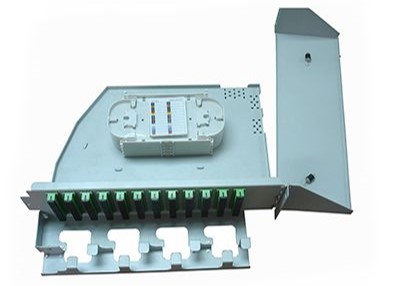It is made of cold roll steel, splice tray can be rotated out. It could be pre-installed with various kinds of fiber optic adapters and pigtails. It is ideal for indoor fiber optic cables connection storage, distribution and management